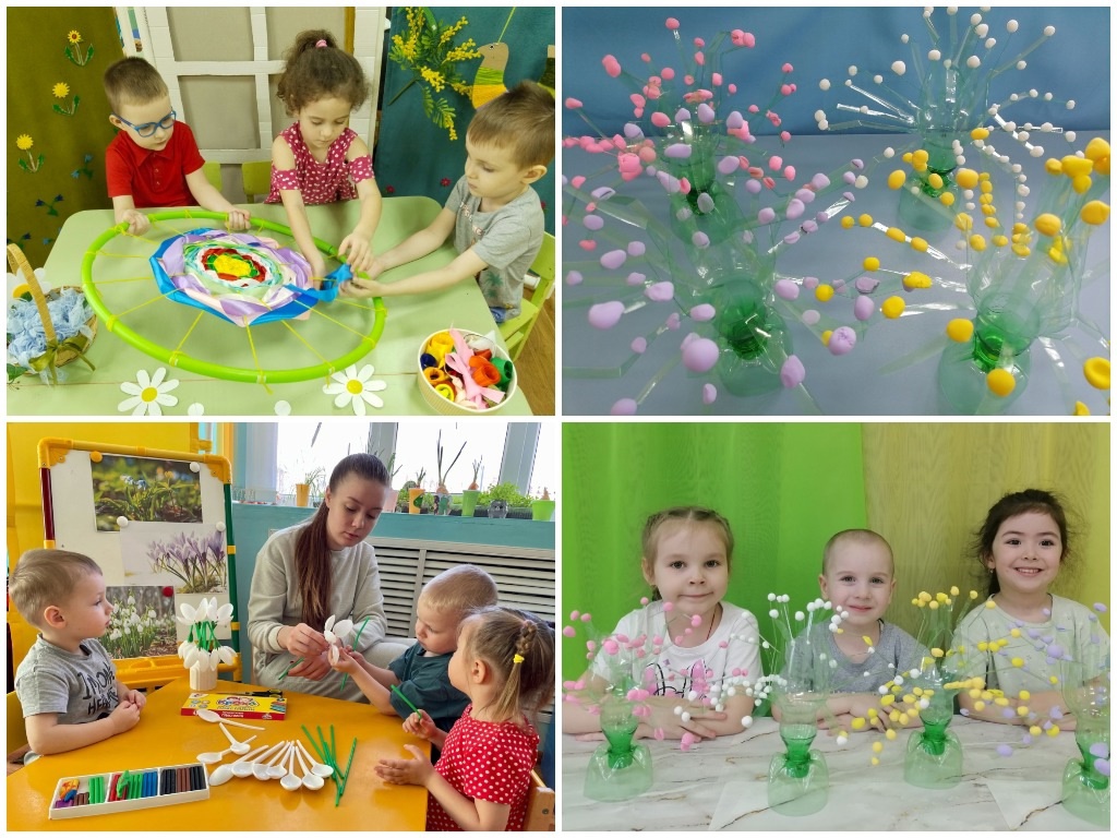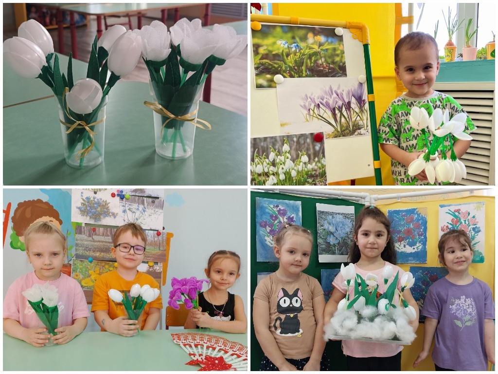 В рамках экомарафона «Мусор – в дело» в детском саду прошла акция «Вторая жизнь старым вещам». Мастер-класс «Первоцветы» по изготовлению первых весенних цветов из старых ненужных вещей был организован во всех возрастных группах.Посмотрите какие очаровательные, прелестные подснежники, мимозы, крокусы, тюльпаны получились у наших дошколят.